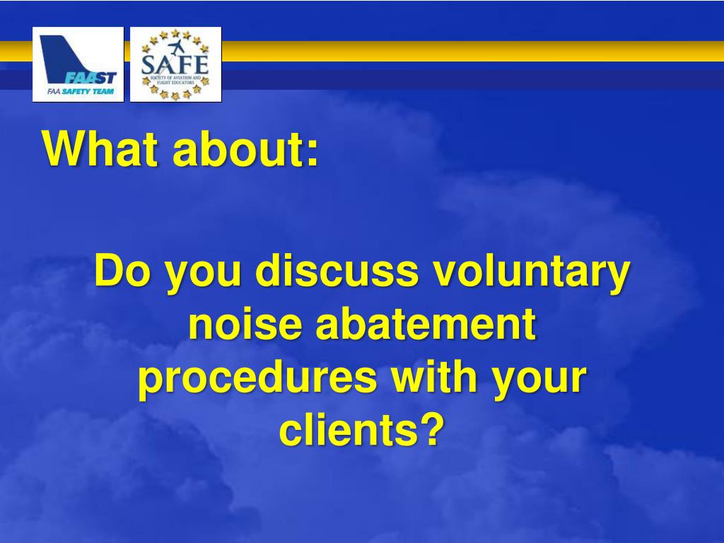 What about: Do you discuss voluntary noise abatement procedures with your clients?