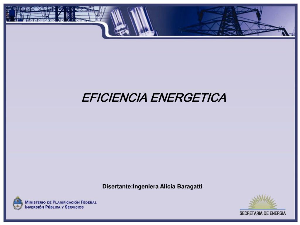 EFICIENCIA ENERGETICA Disertante:Ingeniera Alicia Baragatti