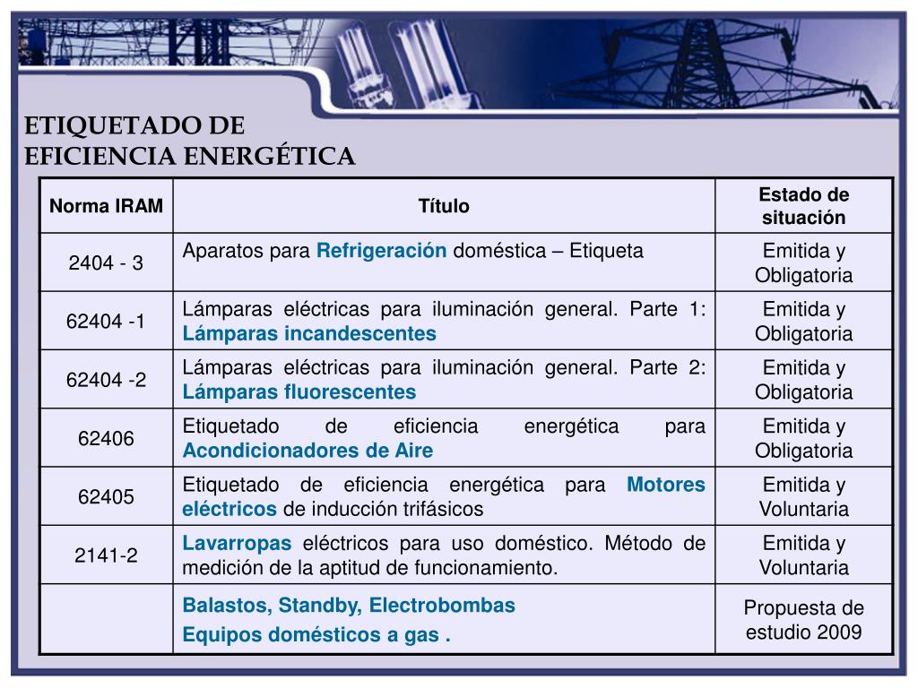 PRÓXIMOS EQUIPOS A ETIQUETAR CON NORMA IRAM EMITIDA