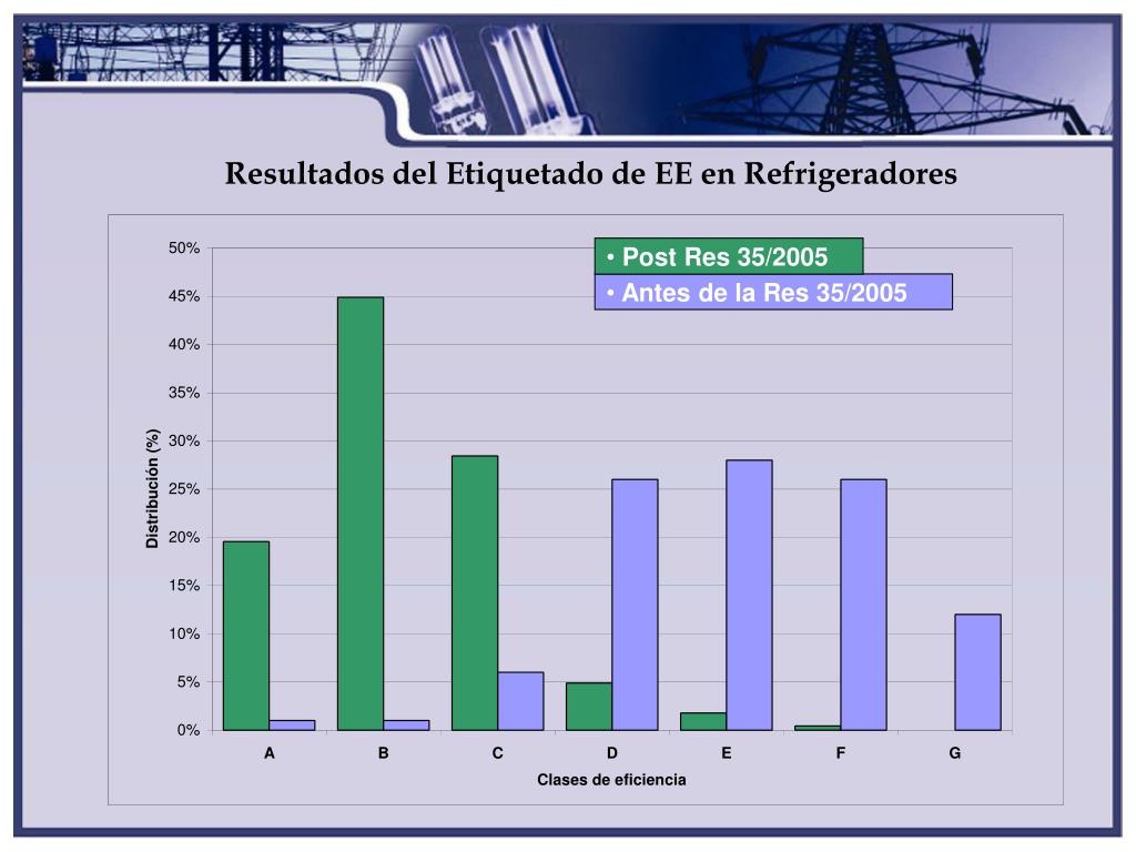 Resultados del Etiquetado de EE en Refrigeradores • Post Res 35/2005 • Antes de la Res 35/2005