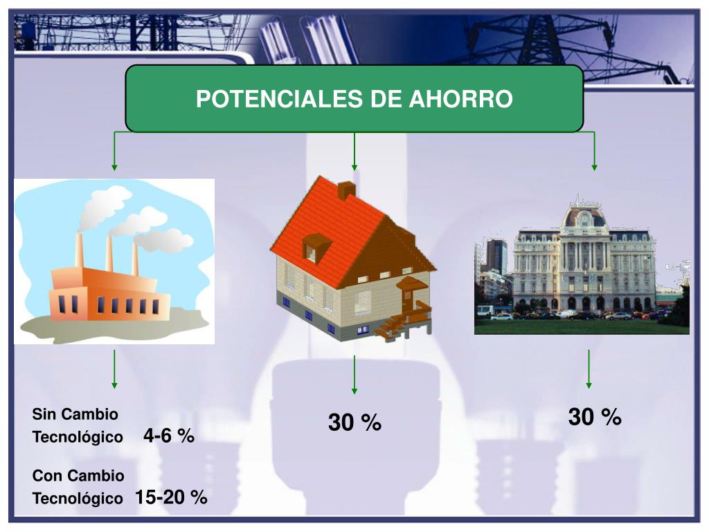 POTENCIALES DE AHORRO 30 % Sin Cambio Tecnológico4-6 % 30 % Con Cambio Tecnológico 15-20 %