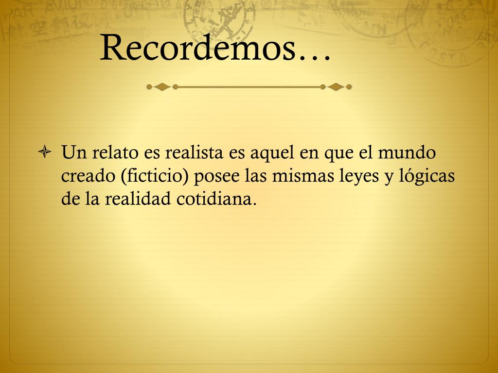 Recordemos… Un relato es realista es aquel en que el mundo creado (ficticio) posee las mismas leyes y lógicas de la realidad cotidiana.