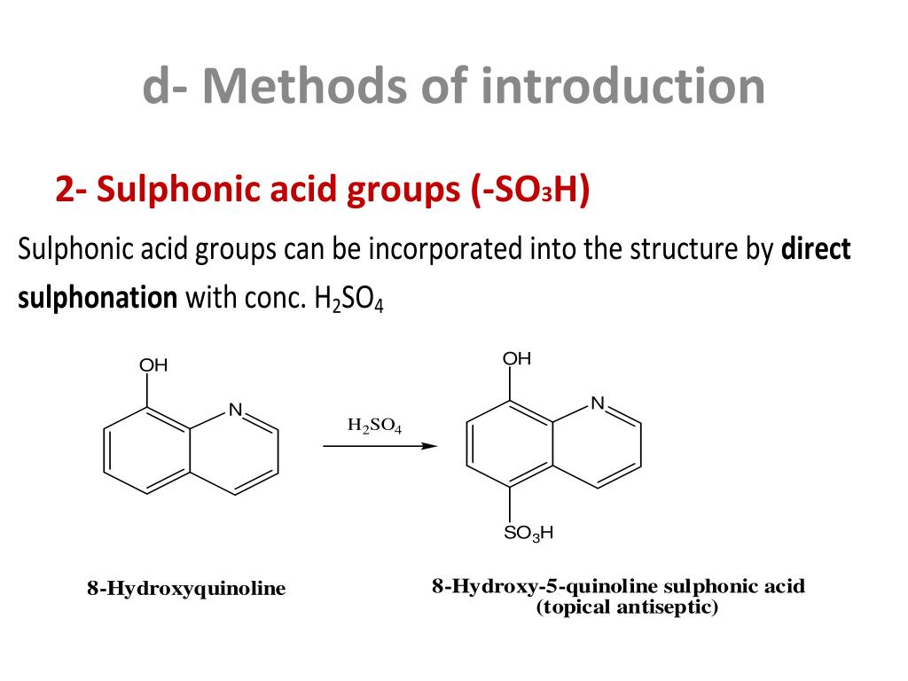 d- Methods of introduction 2- Sulphonic acid groups (-SO3H)