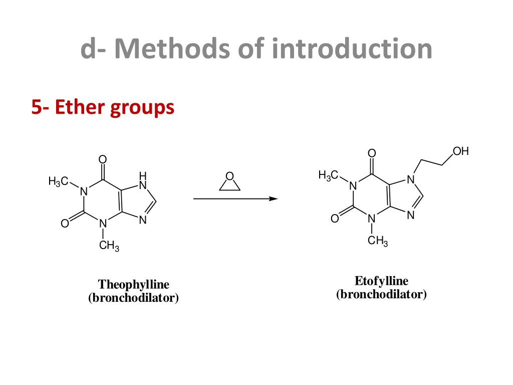 d- Methods of introduction 3- Basic groups -By alkylation or acylation -Amide derivatives are usually more stable than esters in aqueous solutions