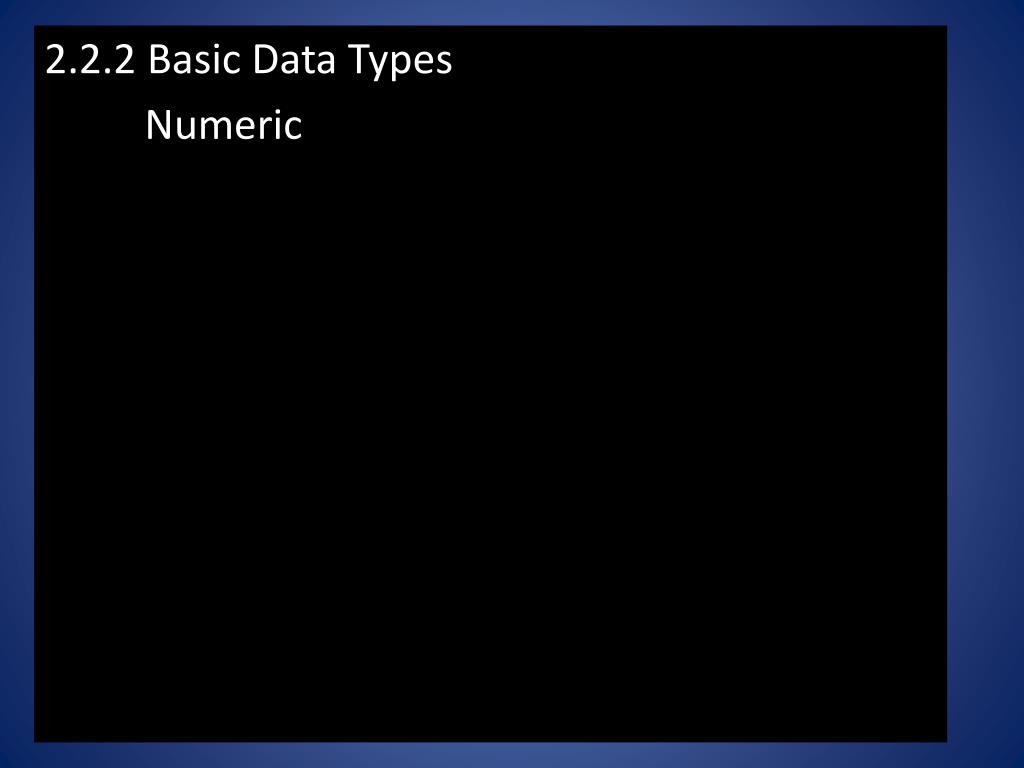 2.2.2 Basic Data Types Numeric
