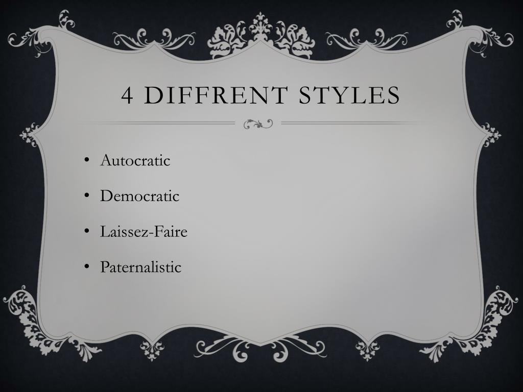 4 diffrentstyles • Autocratic • Democratic • Laissez-Faire • Paternalistic