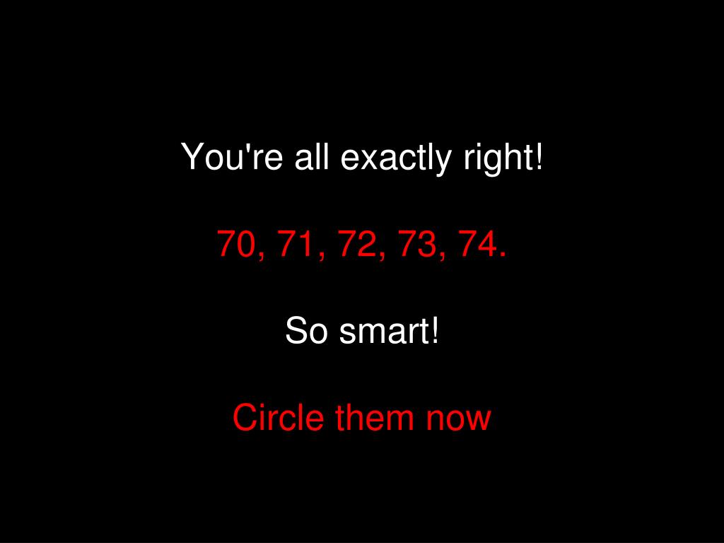 You're all exactly right! 70, 71, 72, 73, 74. So smart! Circle them now