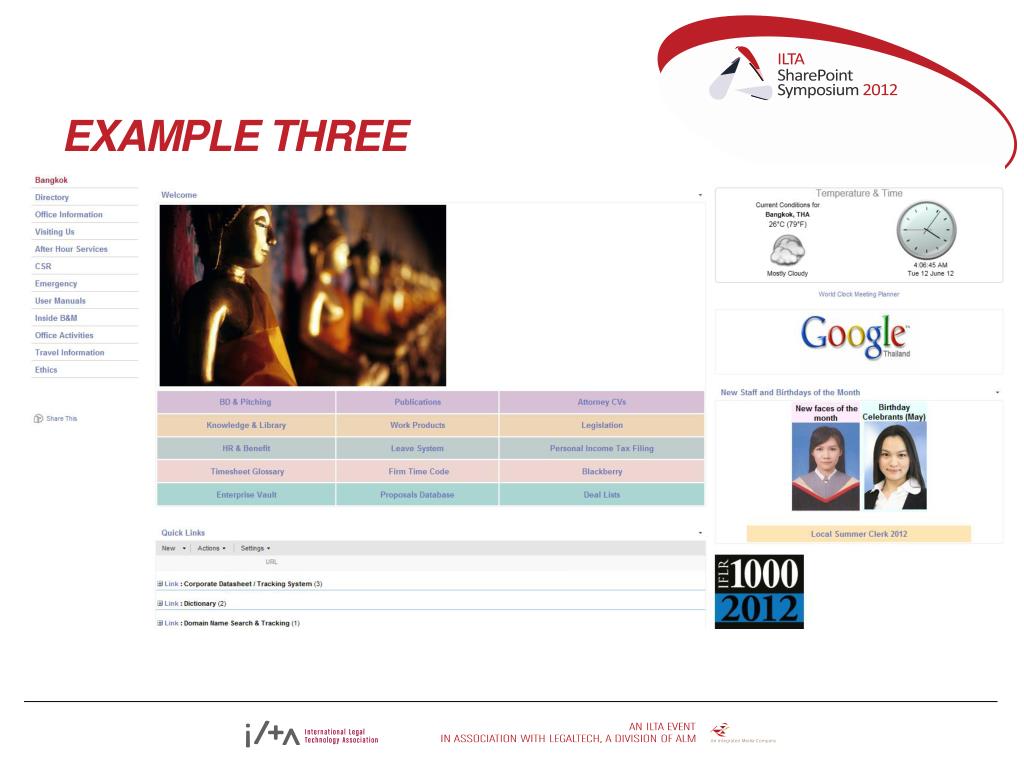 Presenters • Mike Keenan, SharePoint Administrator, Nixon Peabody LLP, Rochester, New York, 700+ Attorneys • Richard J. Krzyminski, Assistant Director of Global Knowledge & Web Solutions, Mayer Brown LLP, Chicago, Illinois, 1600+ Lawyers • Manish Awasthi, Chief Global SharePoint Architect, Baker & McKenzie, Chicago, Illinois, 4000+ Lawyers