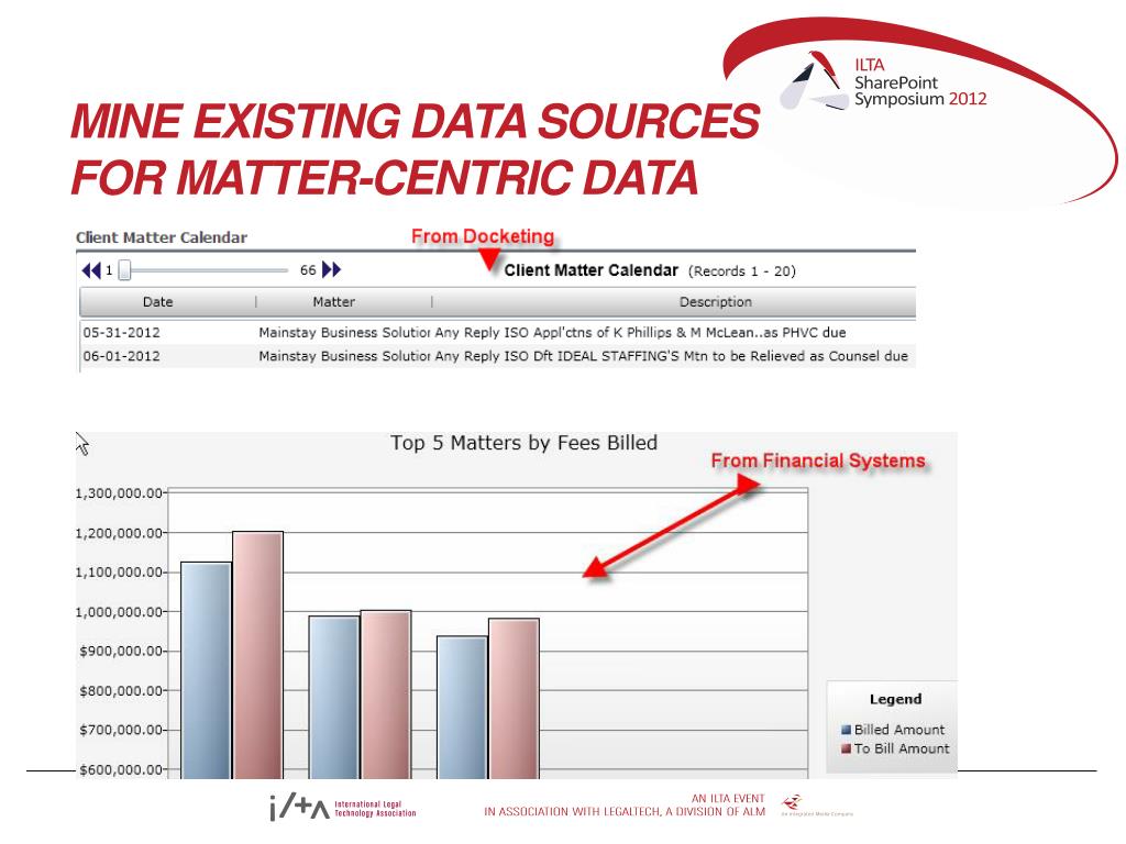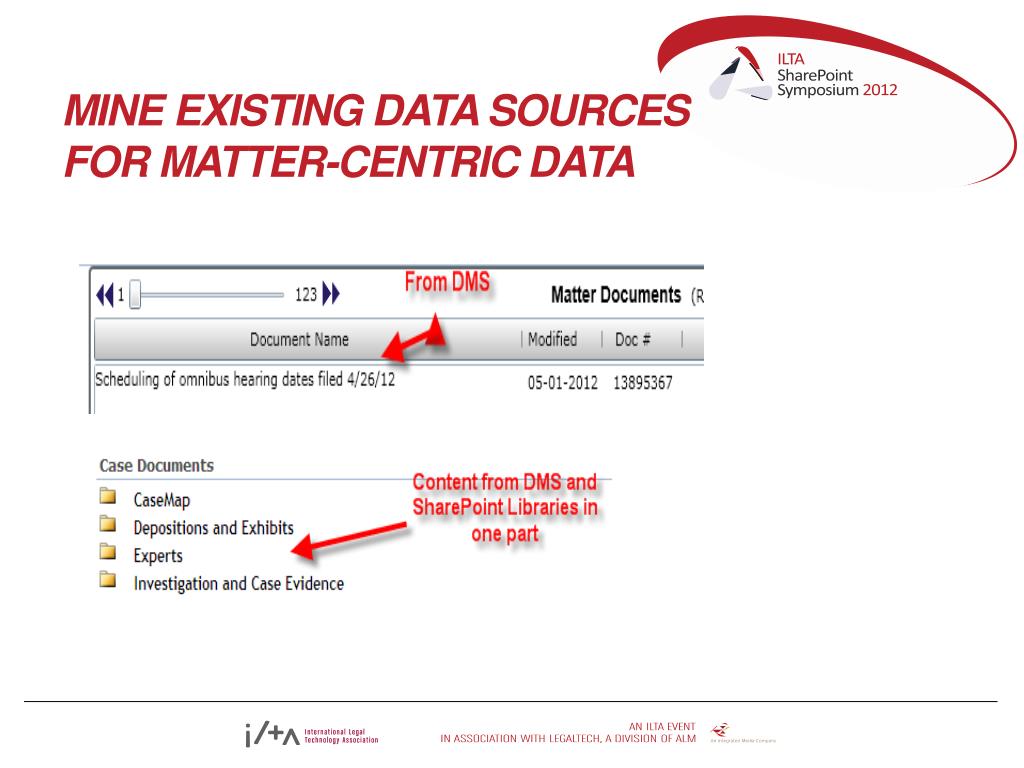 Current Environments • Nixon Peabody: SharePoint 2003 Portal with separate WSS 2.0 server (150+ sites) and separate WSS 3.0 server (1000+ sites). SharePoint 2010 build-out is in progress with plans for matter-centric environment (site for every matter) and eventual use of SharePoint as a DMS. • Mayer Brown: MOSS 2007, moving to SharePoint 2010 in July. Matter-Centric environment using iManage WorkSite 8.5. Integration with SharePoint provided by Handshake. • Baker McKenzie – Moss 2007 – Intranet, SharePoint 2010 – In production for non Intranet Applications.