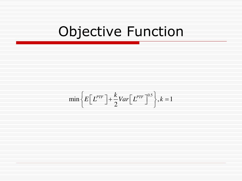 6. Conclusion • This paper successfully derives the formulae of the first and second moments of loss functions based on a multi-assets return model. • With these formulae, we can analyze the portfolio problems and obtain optimal investment strategies. • Under single-period rule, we found an efficient frontier in the mean-variance plot. This efficient frontier can be found under an arbitrary policies portfolio.