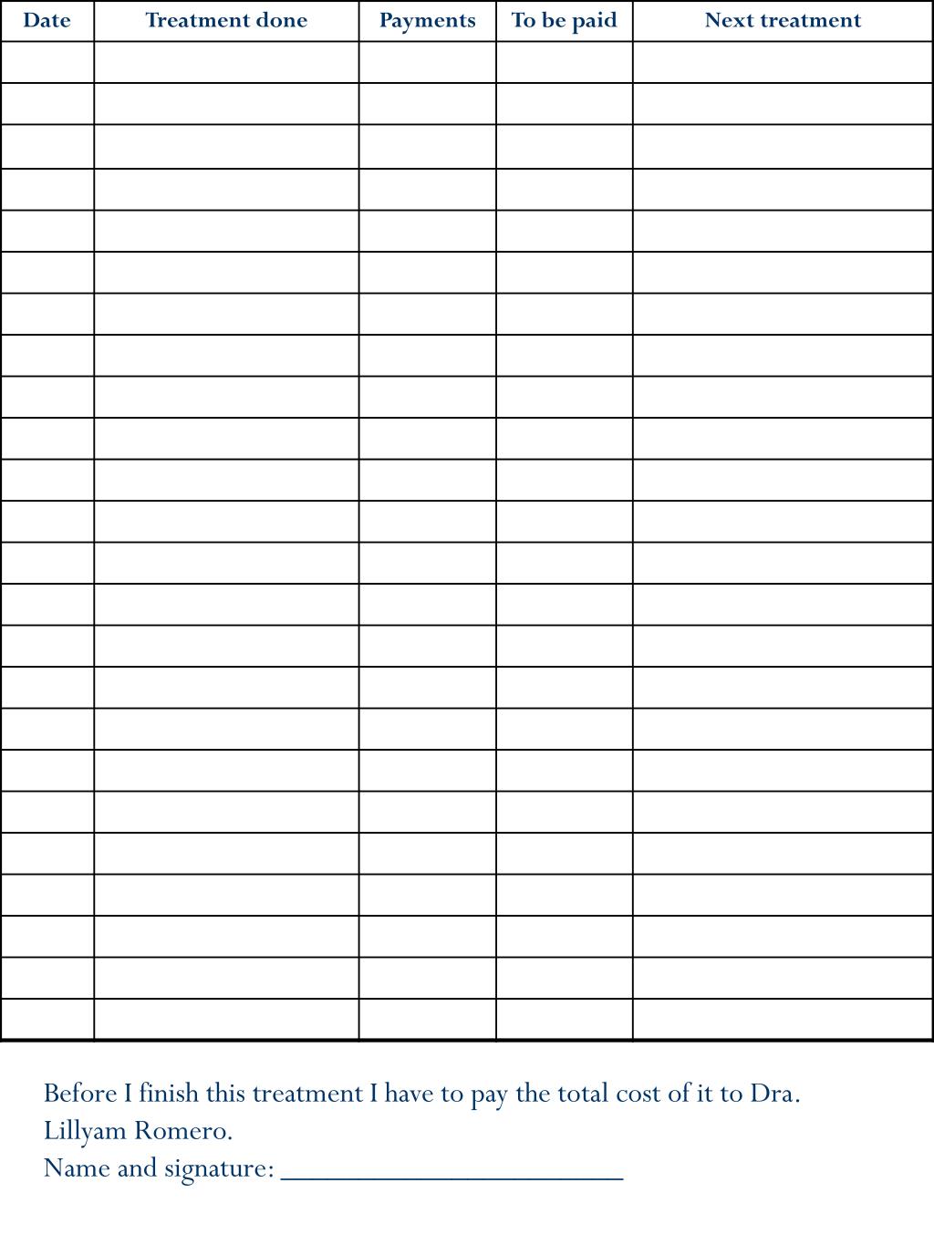 Before I finish this treatment I have to pay the total cost of it to Dra. Lillyam Romero. Name and signature: ______________________