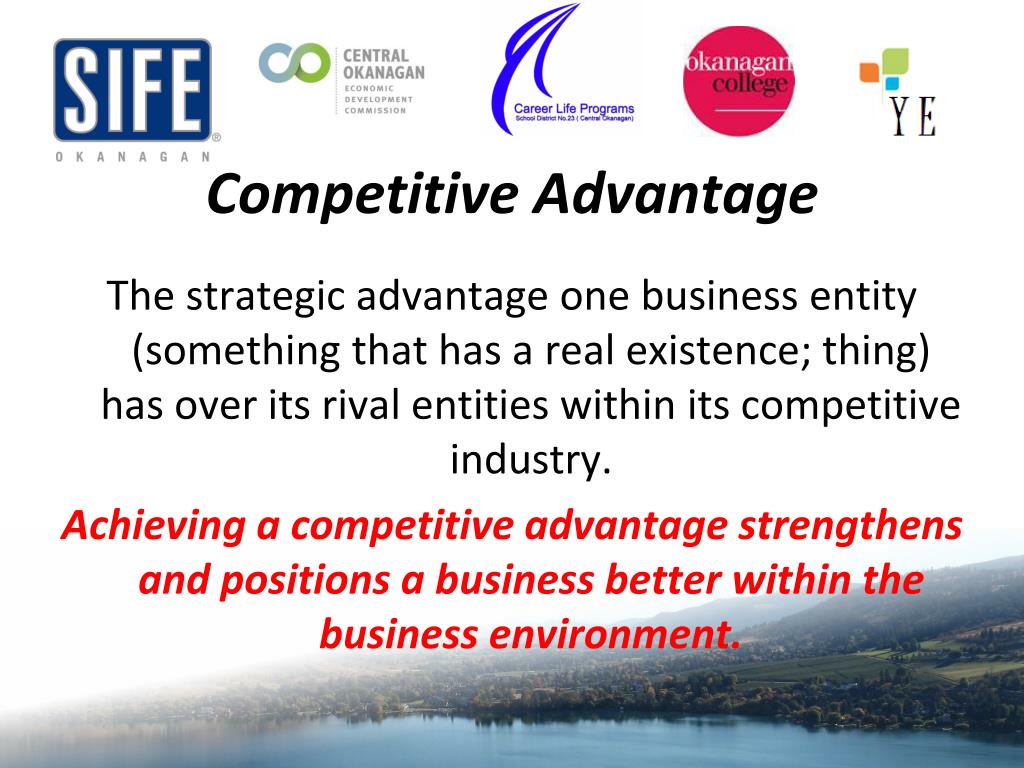 Competitive Advantage The strategic advantage one business entity (something that has a real existence; thing) has over its rival entities within its competitive industry. Achieving a competitive advantage strengthens and positions a business better within the business environment.