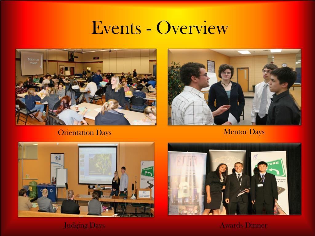 Events - Overview Judging Days Mentor Days Orientation Days Awards Dinner