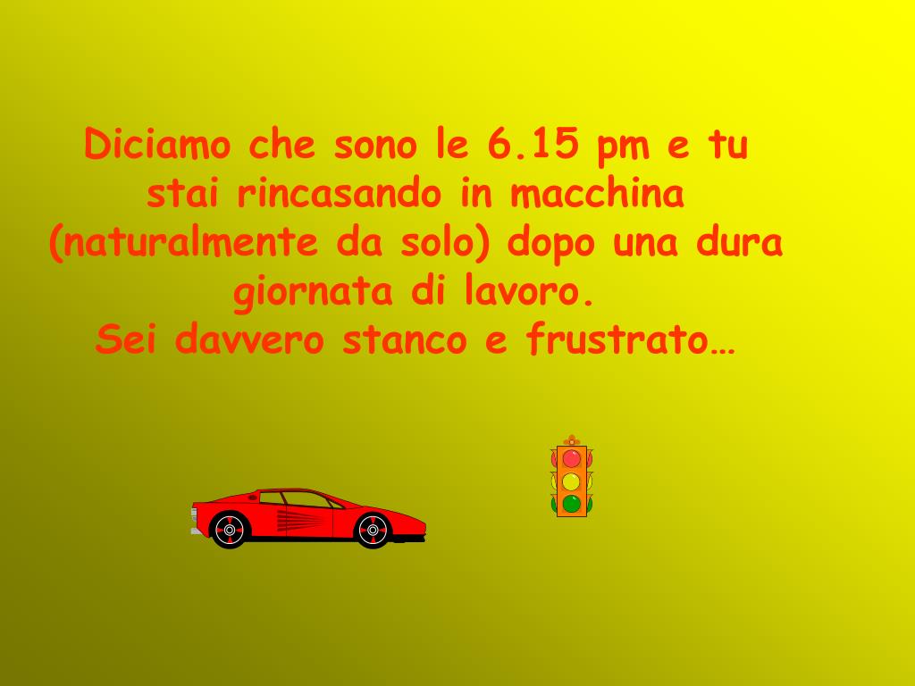 Diciamo che sono le 6.15 pm e tu stai rincasando in macchina (naturalmente da solo) dopo una dura giornata di lavoro. Sei davvero stanco e frustrato…