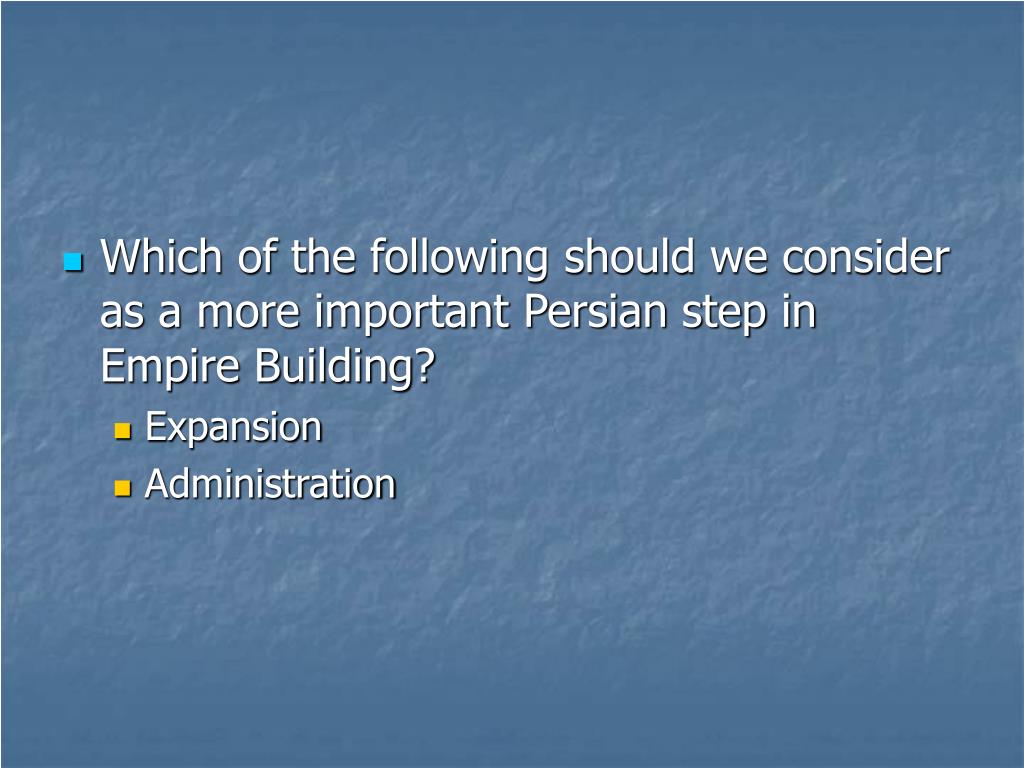 Which of the following should we consider as a more important Persian step in Empire Building? • Expansion • Administration