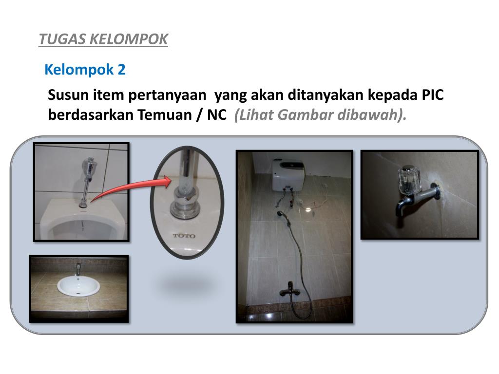 TUGAS KELOMPOK Kelompok 2 • Susun item pertanyaan yang akanditanyakankepada PIC berdasarkanTemuan / NC (LihatGambardibawah).