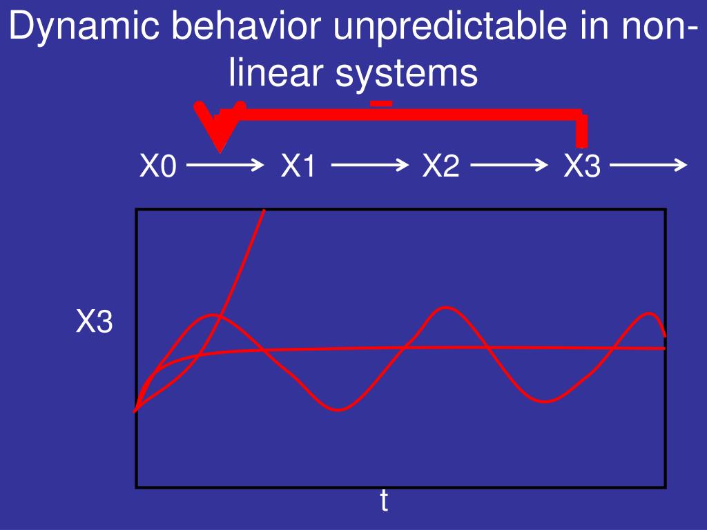 X3 t Dynamic behavior unpredictable in non-linear systems X0 X1 X2 X3 t0 t1 t2 t3 X0 X1 X2 X3