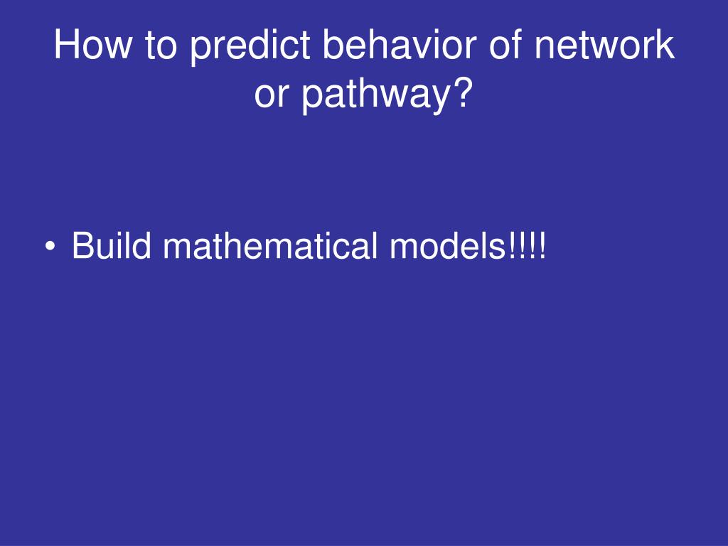 How to predict behavior of network or pathway? • Build mathematical models!!!!