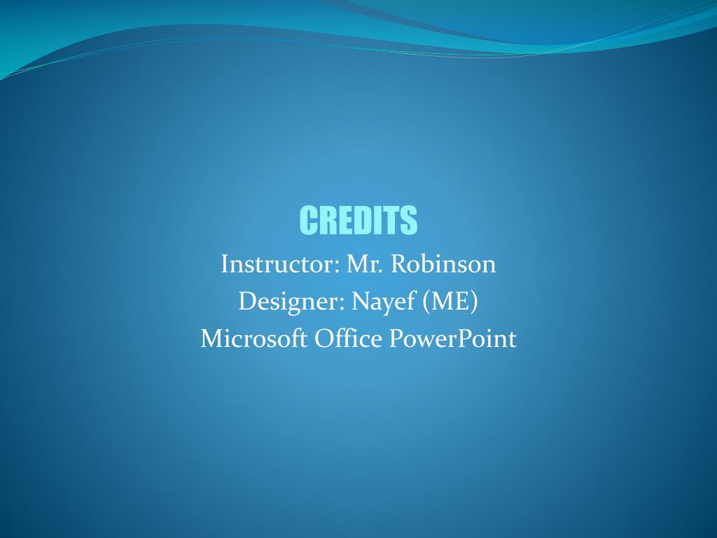 CREDITS Instructor: Mr. Robinson Designer: Nayef (ME) Microsoft Office PowerPoint