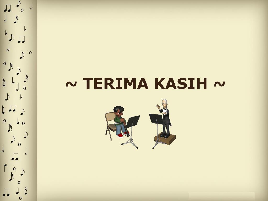 MUSIK PERJUANGAN (NASIONAL) • Ada 2 kelompok : Lagu wajib & Lagu nasional • Lagu nasionaladalah lagu yang bertemakan nasionalisme bangsa, seperti : memupuk cinta tanah air, mempersatukan bangsa, dan membangkitkan perjuangan bangsa • Lagu wajib adalah lagu nasional yang ditetapkan sebagai lagu yang wajib diketahui, dikuasai, dipahami, dan dihayati oleh setiap WNI