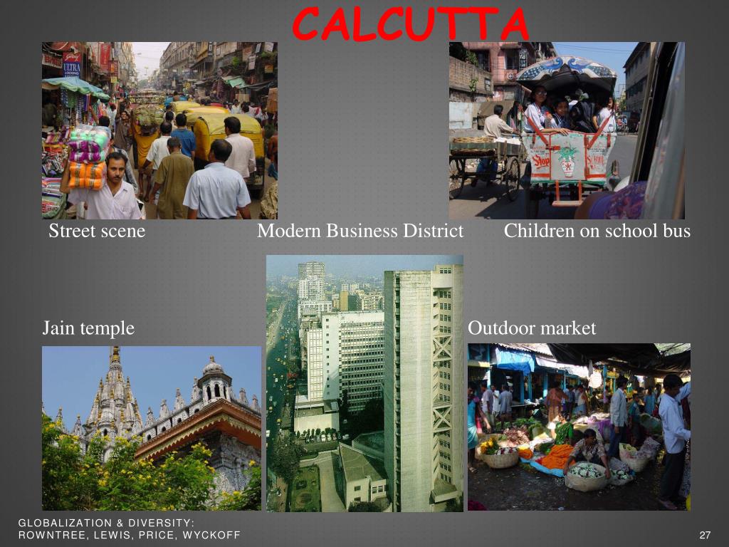 Calcutta Street scene Modern Business District Children on school bus Jain temple Outdoor market Globalization & Diversity: Rowntree, Lewis, Price, Wyckoff