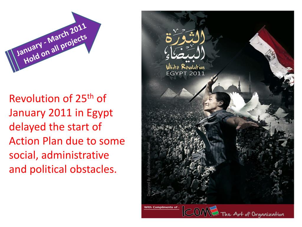 January - March 2011 Hold on all projects Revolution of 25th of January 2011 in Egypt delayed the start of Action Plan due to some social, administrative and political obstacles.