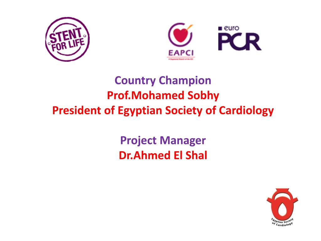 Country Champion Prof.Mohamed SobhyPresident of Egyptian Society of CardiologyProject Manager Dr.Ahmed El Shal