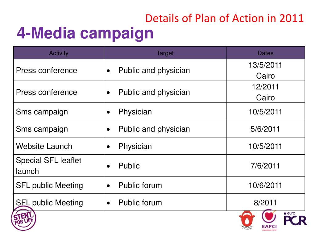 Details of Plan of Action in 2011 4-Media campaign