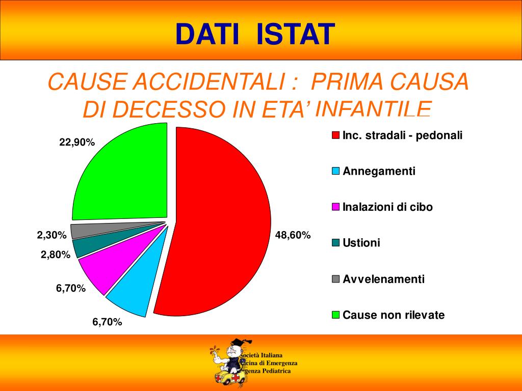 DATI ISTAT CAUSE ACCIDENTALI : PRIMA CAUSA DI DECESSO IN ETA’ INFANTILE Società Italiana di Medicina di Emergenza E Urgenza Pediatrica