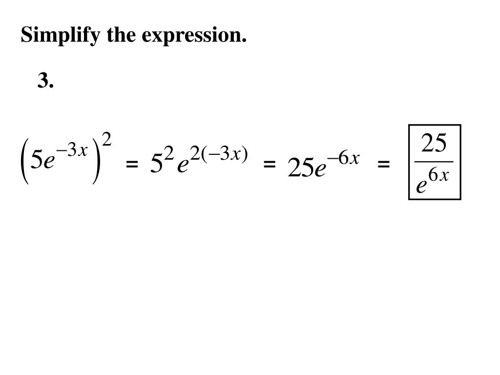 Simplify the expression. = = 1. 4 4 e 2. = e