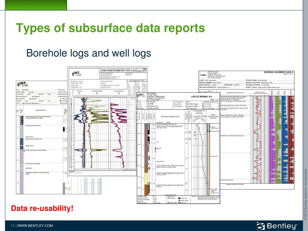 Types of subsurface data reports Borehole logs and well logs Data re-usability!