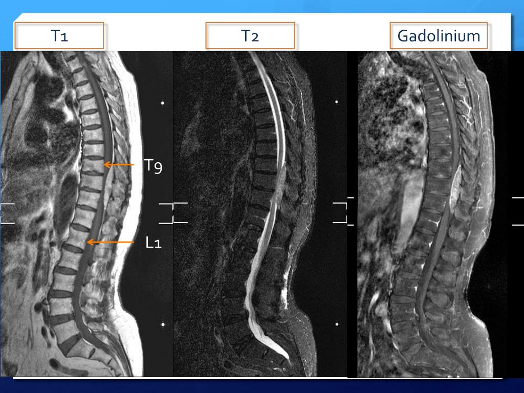 Quiz 1 • MRI features of Spinal Angiolipoma , except? • T1: hyperintense • Fat-suppressed: high signal intensity • Contrast: enhancement • All of above