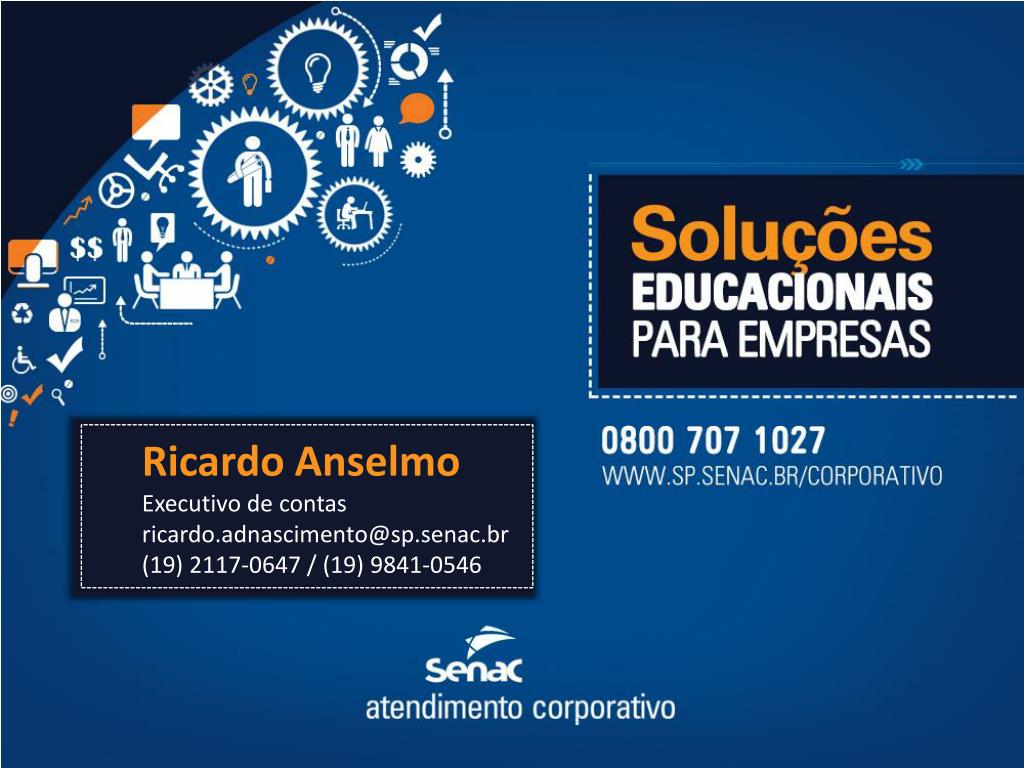 Ricardo AnselmoExecutivo de contasricardo.adnascimento@sp.senac.br(19) 2117-0647 / (19) 9841-0546