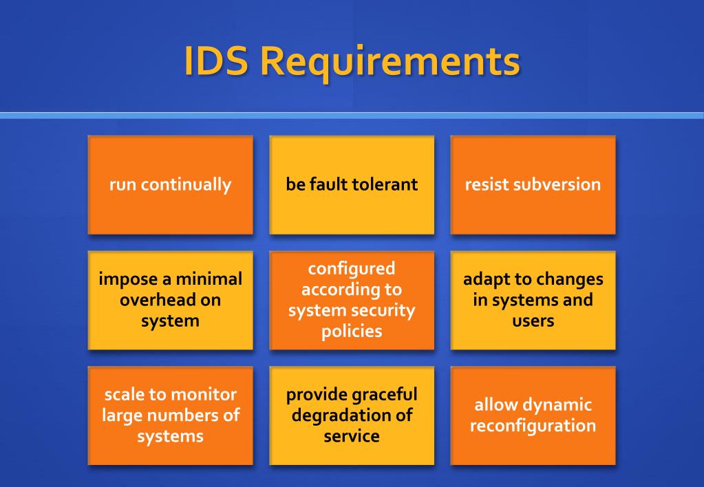 Intrusion Detection Systems (IDSs) host-based IDS monitors the characteristics of a single host for suspicious activity network-based IDS monitors network traffic and analyzes network, transport, and application protocols to identify suspicious activity