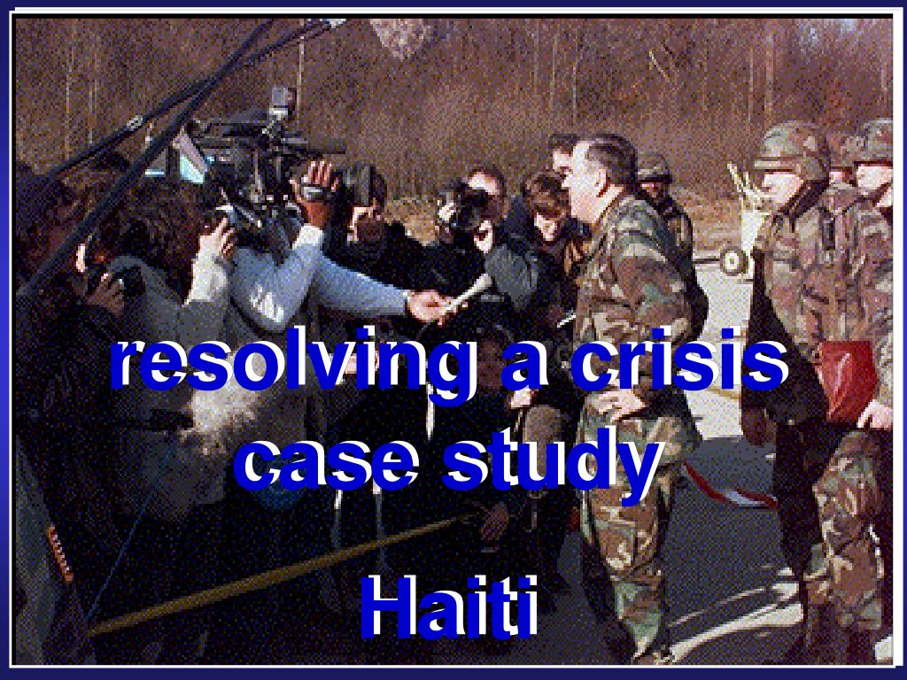 case study: Haiti • 1994 UN authorized the use of force to remove the military dictatorship in Haiti • asked US to restore the lawfully elected government • goal: generate public support for actions • goal: show US resolve, intent to uphold UN resolution • goal:show US willingness to resolve the conflict without military force, although force was authorized