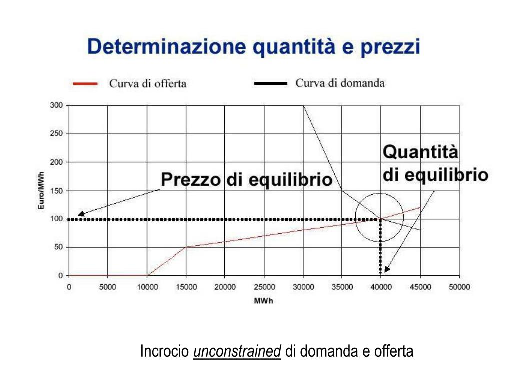€/MWh Riportando all’indietro il prezzo di borsa su ciascuna offerta divendita e di acquisto, si definisce l’energia che deve essere erogata o assorbita da ciascun operatore.
