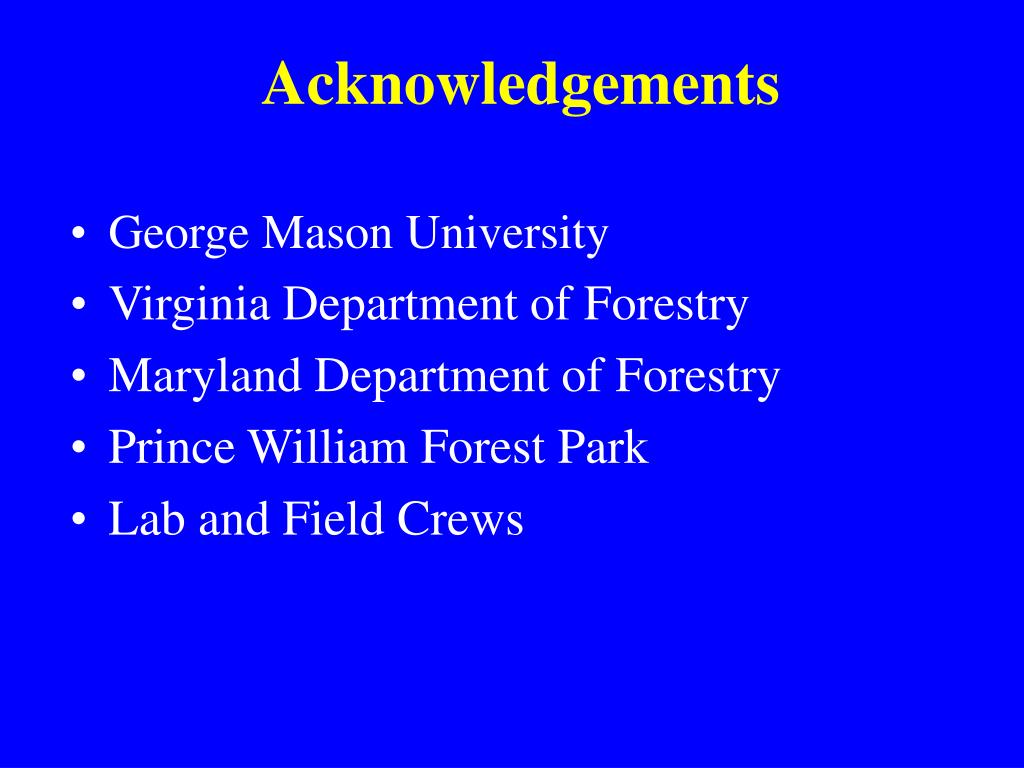 Acknowledgements • George Mason University • Virginia Department of Forestry • Maryland Department of Forestry • Prince William Forest Park • Lab and Field Crews