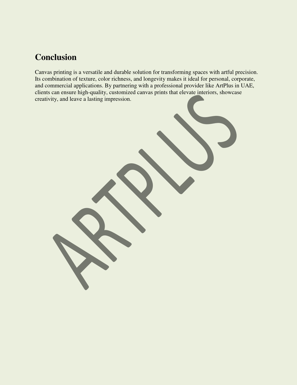 Conclusion Canvas printing is a versatile and durable solution for transforming spaces with artful precision. Its combination of texture, color richness, and longevity makes it ideal for personal, corporate, and commercial applications. By partnering with a professional provider like ArtPlus in UAE, clients can ensure high-quality, customized canvas prints that elevate interiors, showcase creativity, and leave a lasting impression.