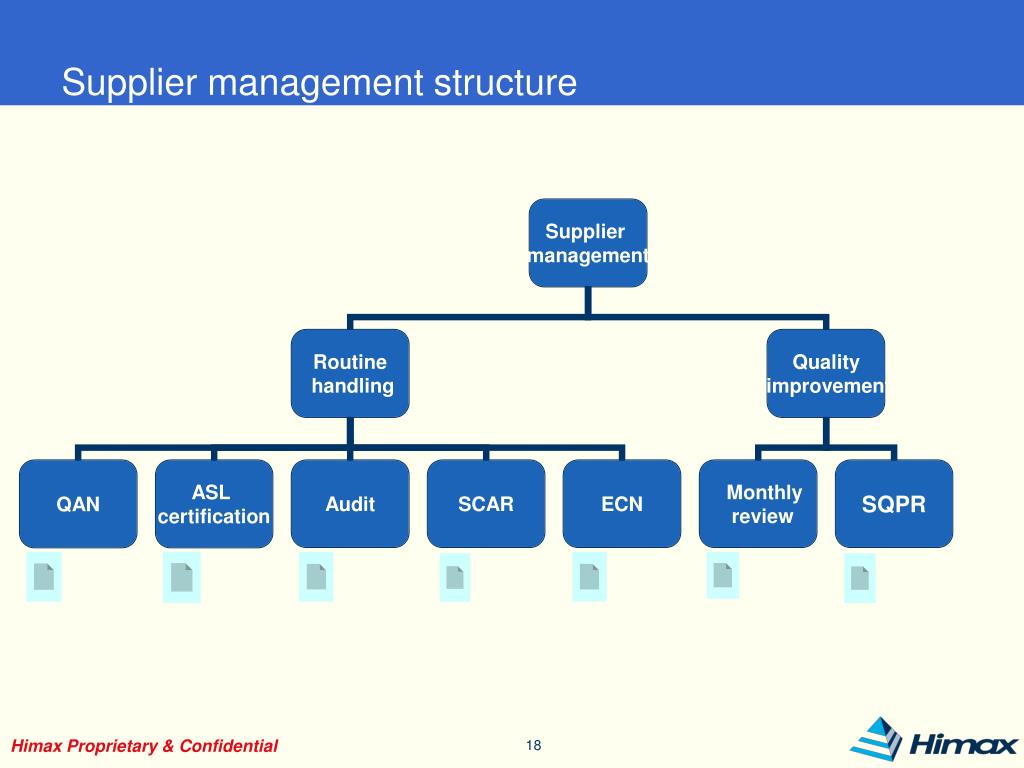 Supplier Management - Monthly Review Monthly Quality Meeting Himax total quality commitment to our customers Total quality commitment to Himax’s customers Supplier total quality commitment to Himax Review Items 1) Yield 2) SCAR Report 3) SPC 4) Himax LRR & Supplier Production 5) CCN 6) KPI