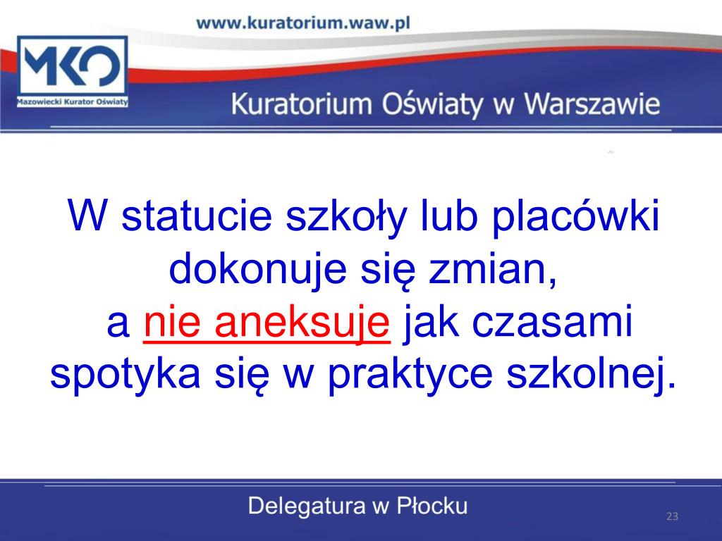 W statucie szkoły lub placówki dokonuje się zmian, a nie aneksuje jak czasami spotyka się w praktyce szkolnej.