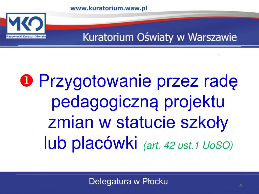 Przygotowanie przez radę pedagogiczną projektu zmian w statucie szkoły lub placówki (art. 42 ust.1 UoSO)