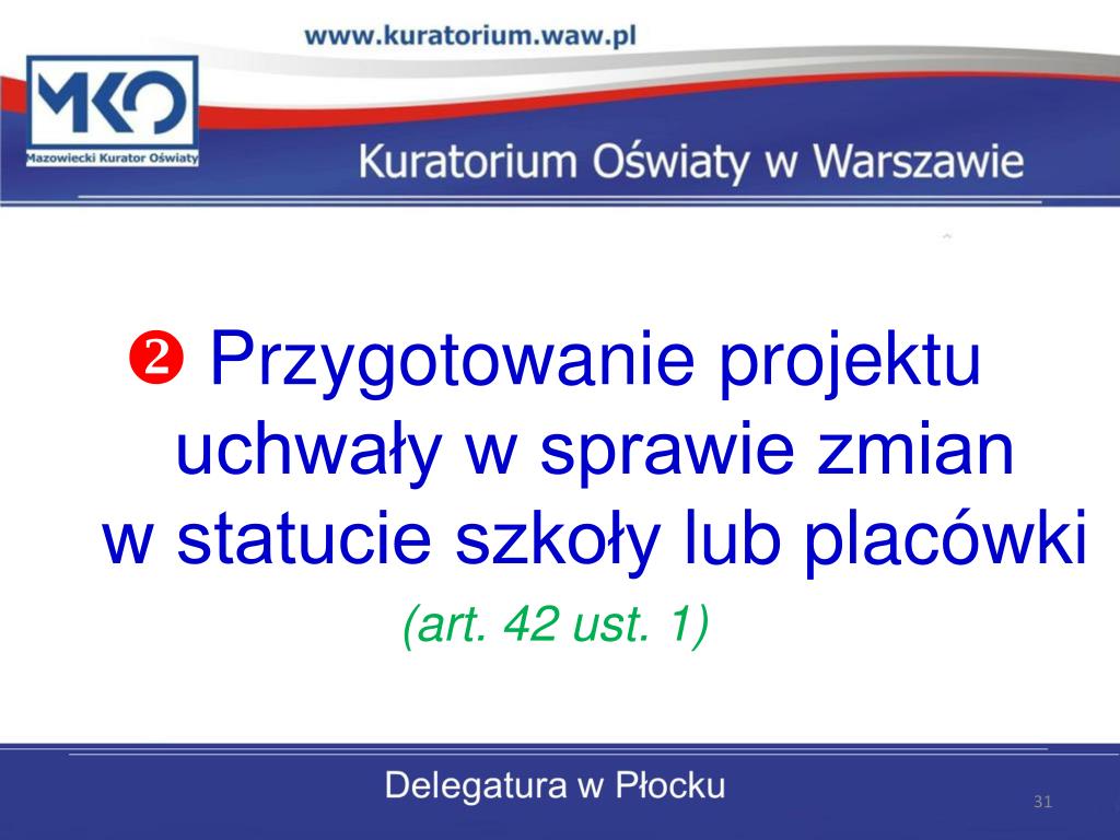 Przygotowanie projektu uchwały w sprawie zmian w statucie szkoły lub placówki (art. 42 ust. 1)