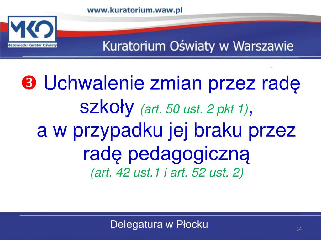 Uchwalenie zmian przez radę szkoły (art. 50 ust. 2 pkt 1),a w przypadku jej braku przez radę pedagogiczną (art. 42 ust.1 i art. 52 ust. 2)