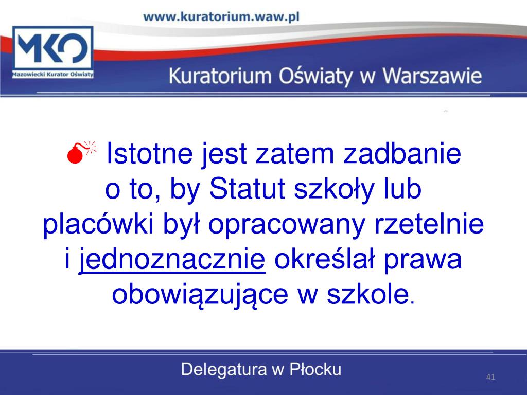 Istotne jest zatem zadbanie o to, by Statut szkoły lub placówki był opracowany rzetelnie i jednoznacznie określał prawa obowiązujące w szkole.