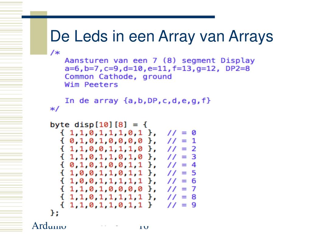 Arduino Arrays Is een genummerde reeks waarden Opgepast: nummering begint bij 0! Dus