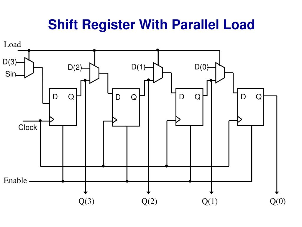D(0) D D D D Q Q Q Q Shift Register With Parallel Load Load D(3) D(1) D(2) Sin Clock Enable Q(3) Q(2) Q(1) Q(0)