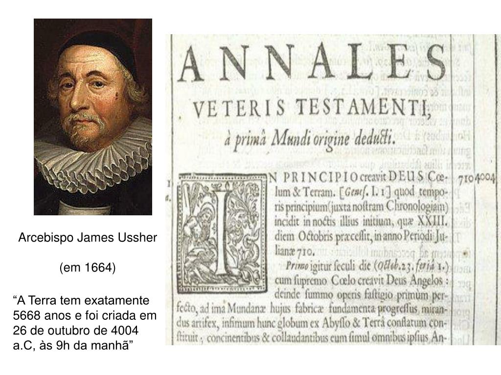 Arcebispo James Ussher (em 1664) “A Terra tem exatamente 5668 anos e foi criada em 26 de outubro de 4004 a.C, às 9h da manhã”