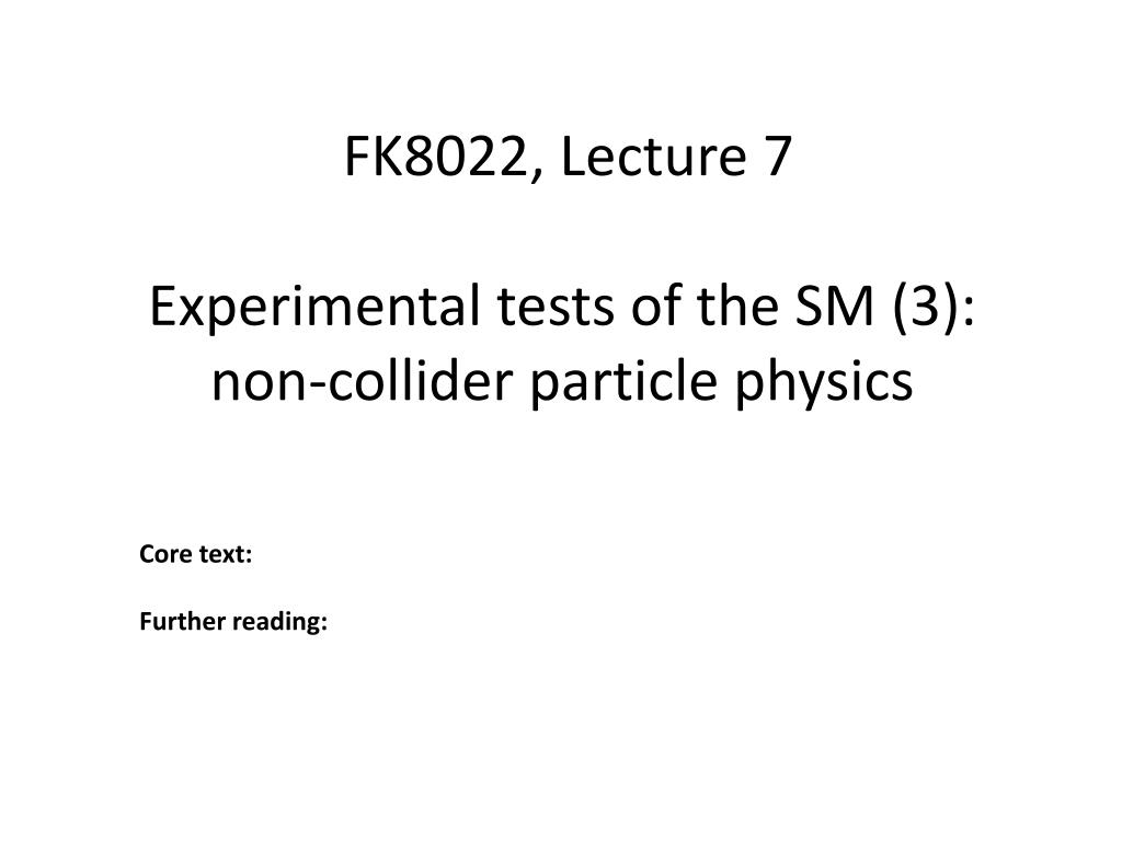 Experimental tests of the SM (3):non-colliderparticlephysics FK8022, Lecture7 Core text: Furtherreading: