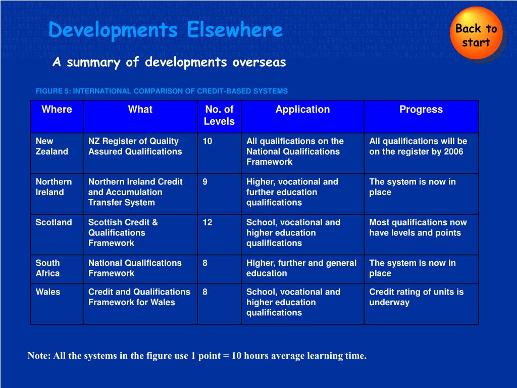 Developments Elsewhere Back to start A summary of developments overseas FIGURE 5: INTERNATIONAL COMPARISON OF CREDIT-BASED SYSTEMS Note: All the systems in the figure use 1 point = 10 hours average learning time.