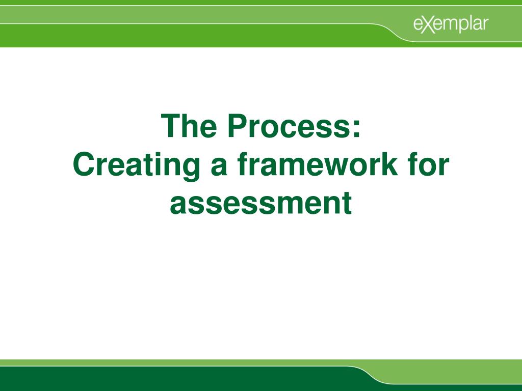Application stage – download via web • Initial interview – scope and strategic overview • Panel Approval • Data capture process: • What does an eXemplar consider? • A framework for assessment • What makes a project exemplary • Analysis and reporting • Case study • Dissemination